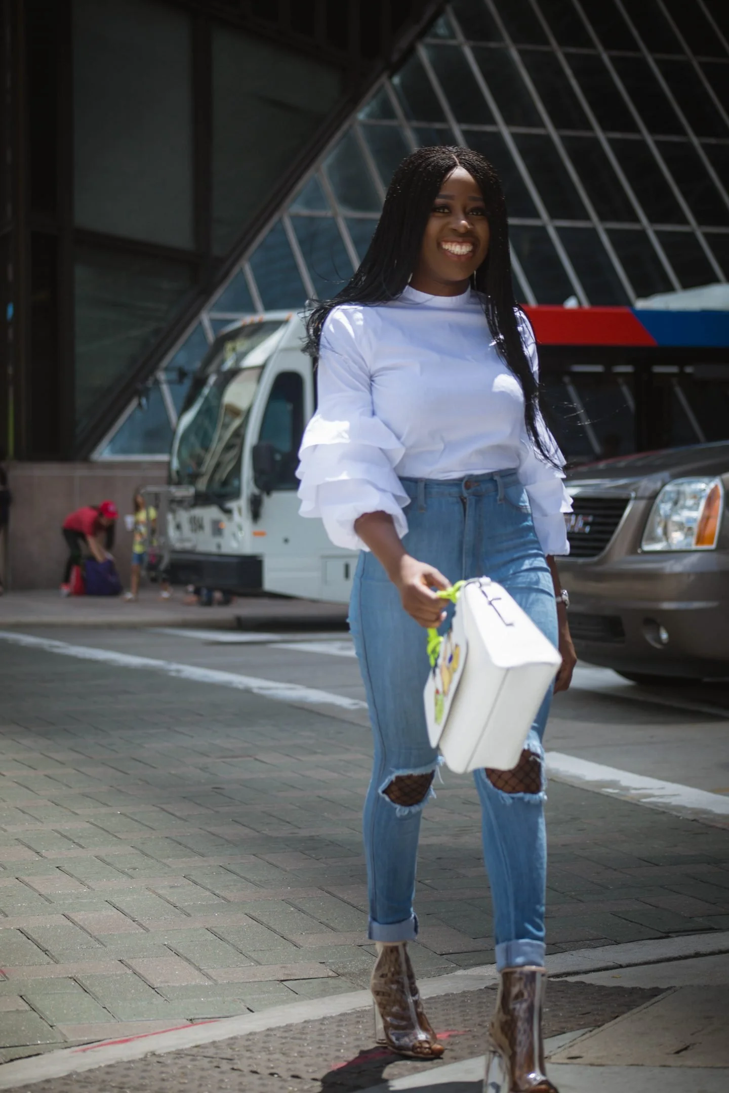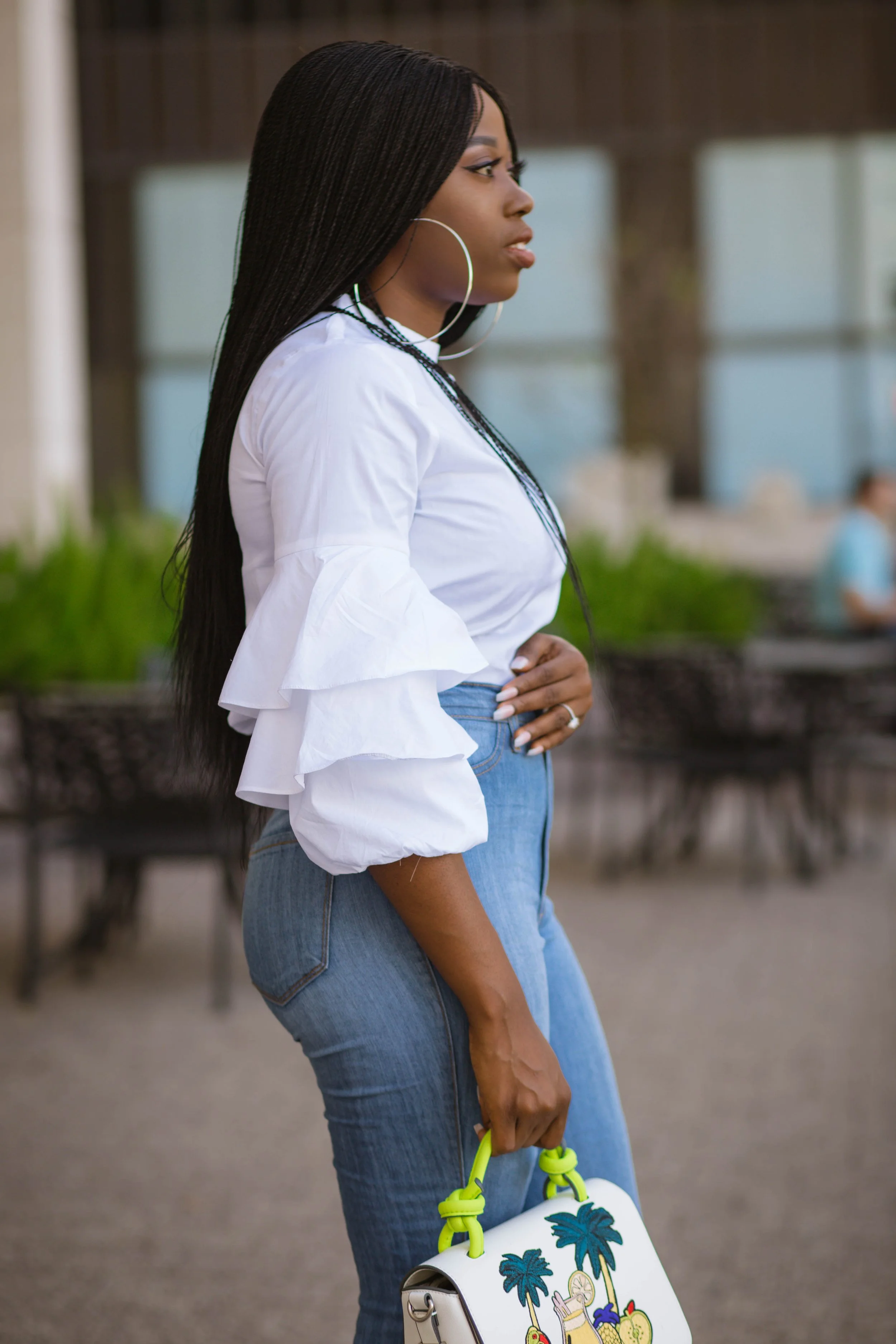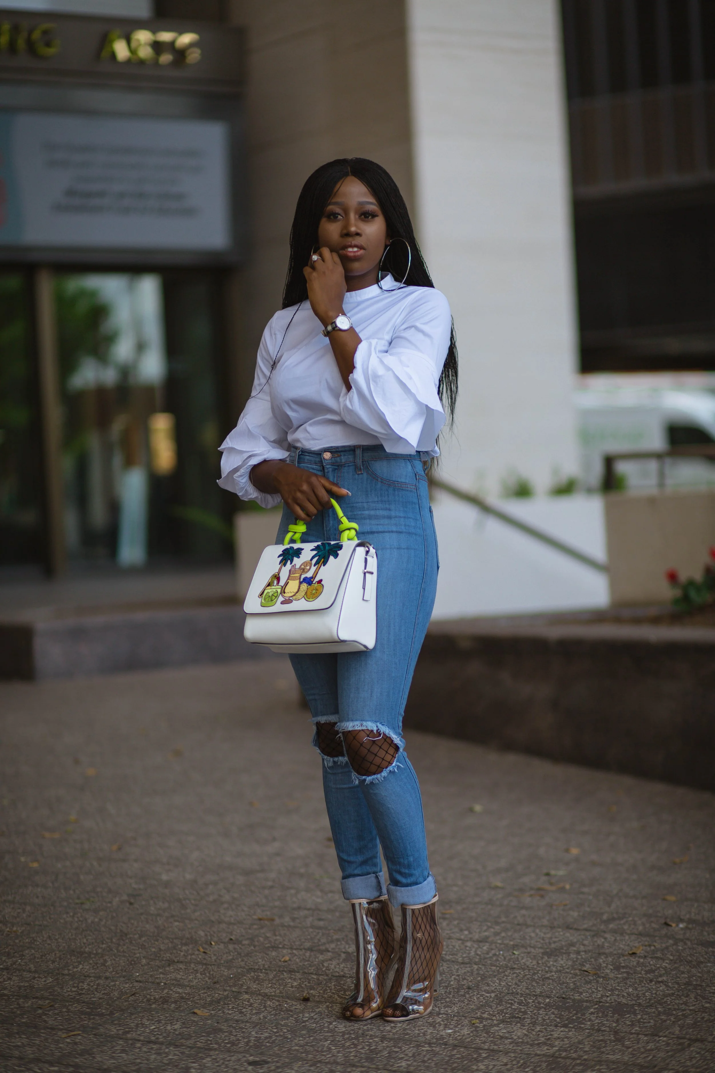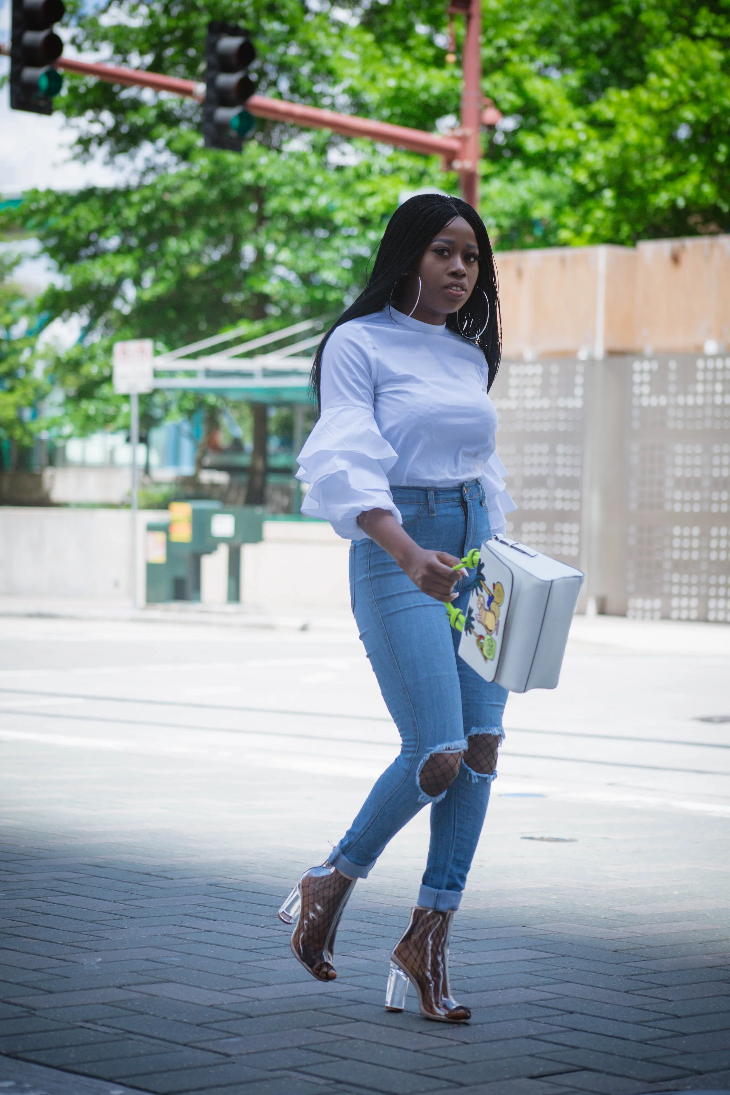 In case you haven’t noticed, my best colors are blue and white, I feel like these two colors suit me and I can’t go wrong with them. Which is why I paired this beautiful frilled blouse with a denim and added a pop of sexiness with fishnet.